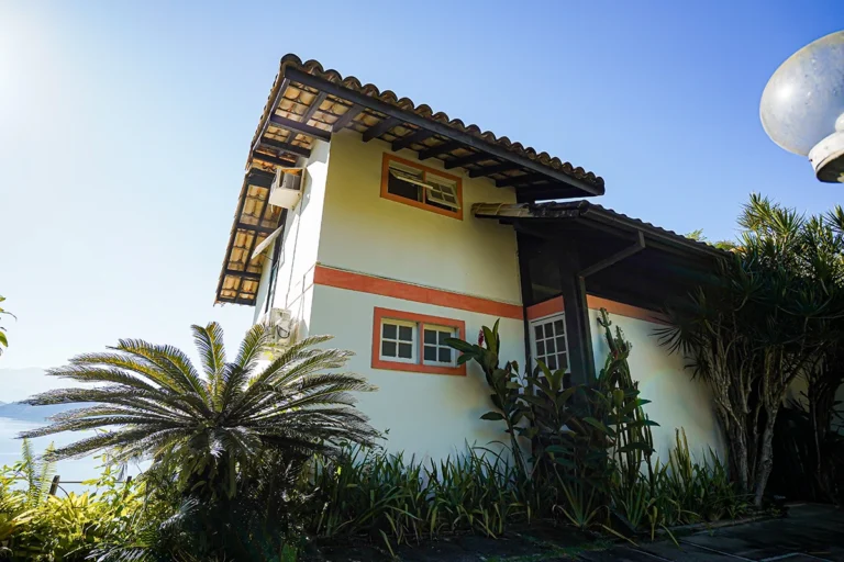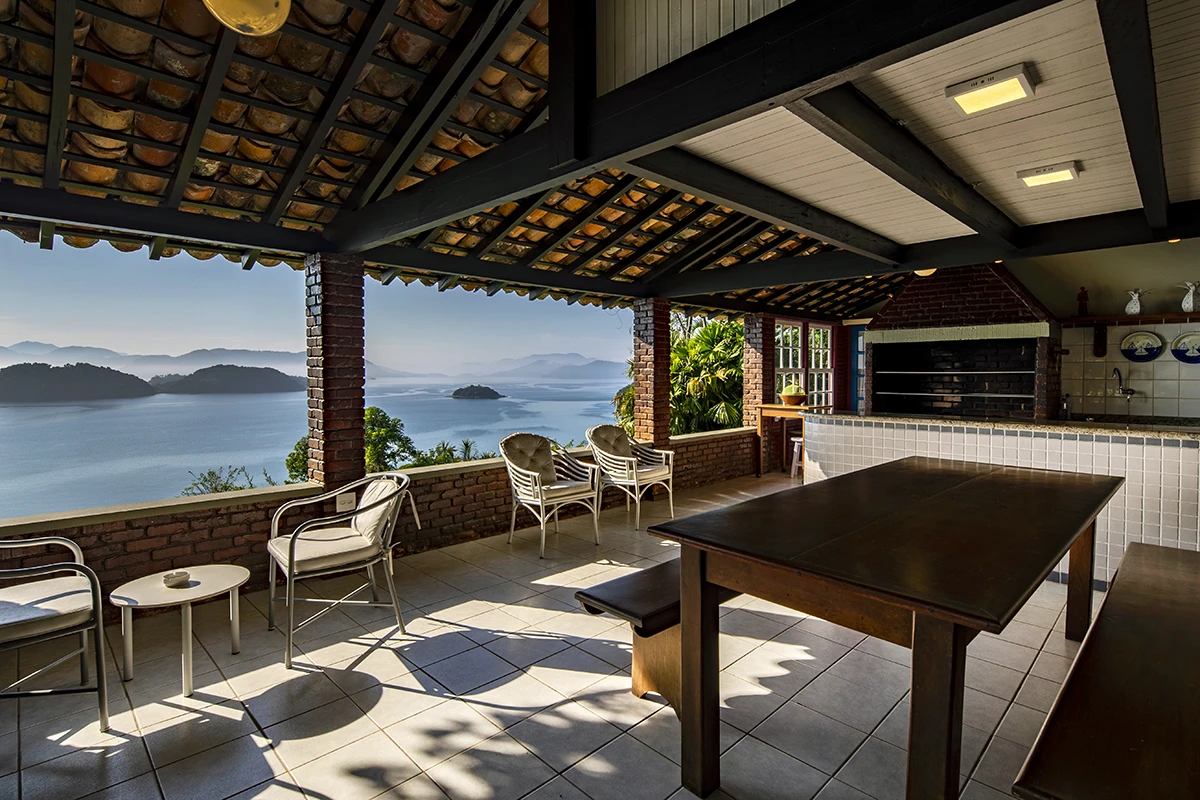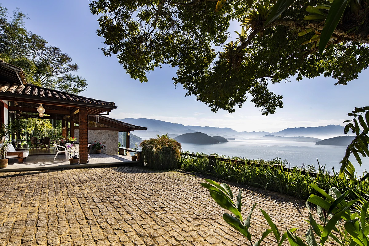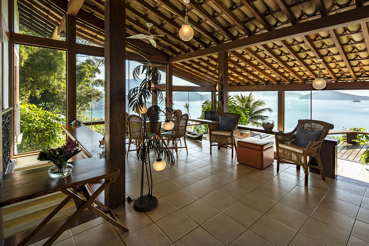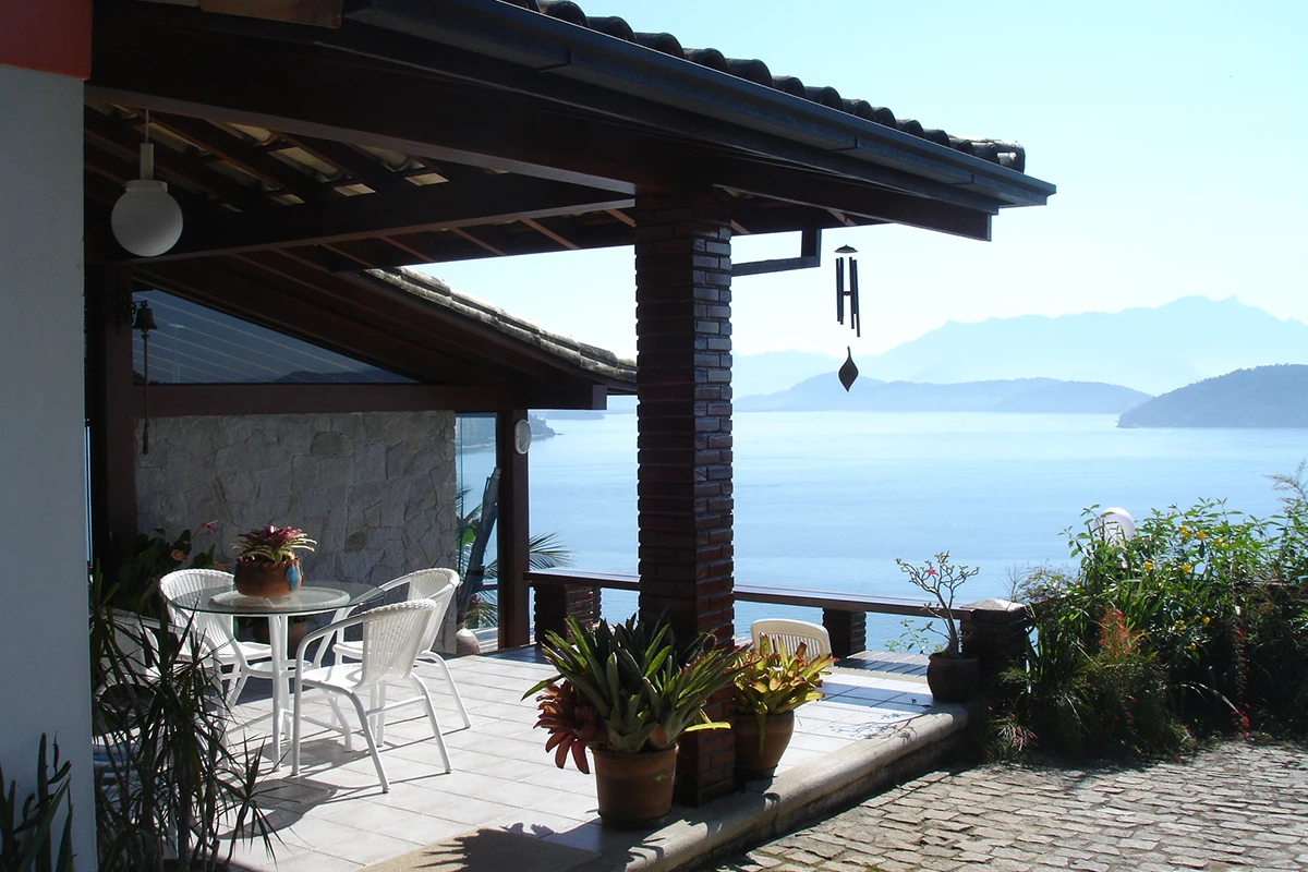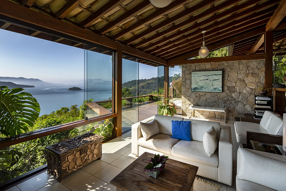 Casa situada a 80 metros do nível do mar com vista panorâmica e exclusiva da Baía da Ribeira. Possui salas de jantar, estar e TV, projetadas em um único ambiente envidraçado em diferentes níveis; cozinha panorâmica completa tipo americana; três quartos (todos climatizados), sendo duas suítes; banheiro social; área externa com varanda e amplo deck para contemplação da vista.